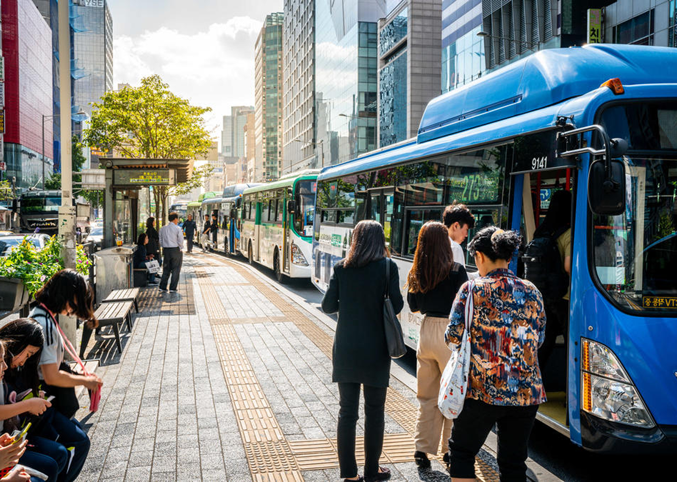 버스는 지하철이 닿지 않는 지역까지 연결해 주는 중요한 교통수단이다. 한국의 버스는 색상별로 기능이 구분되어 있어 처음 이용하는 사람도 비교적 쉽게 이해할 수 있다.